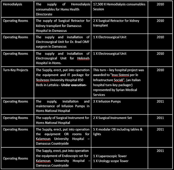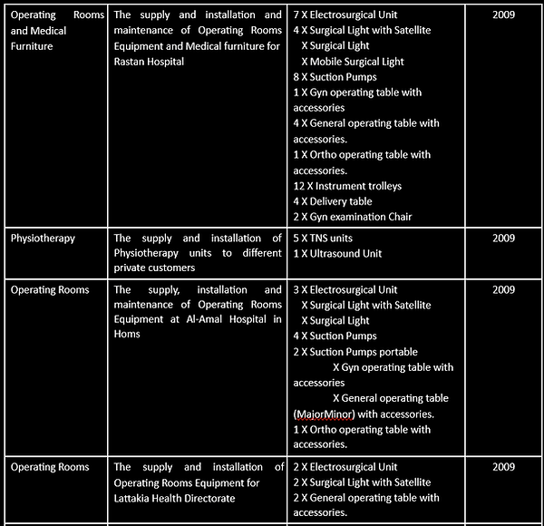 types of hospitals in different geographical locations in Syria. The scope of work included the logistic handling,